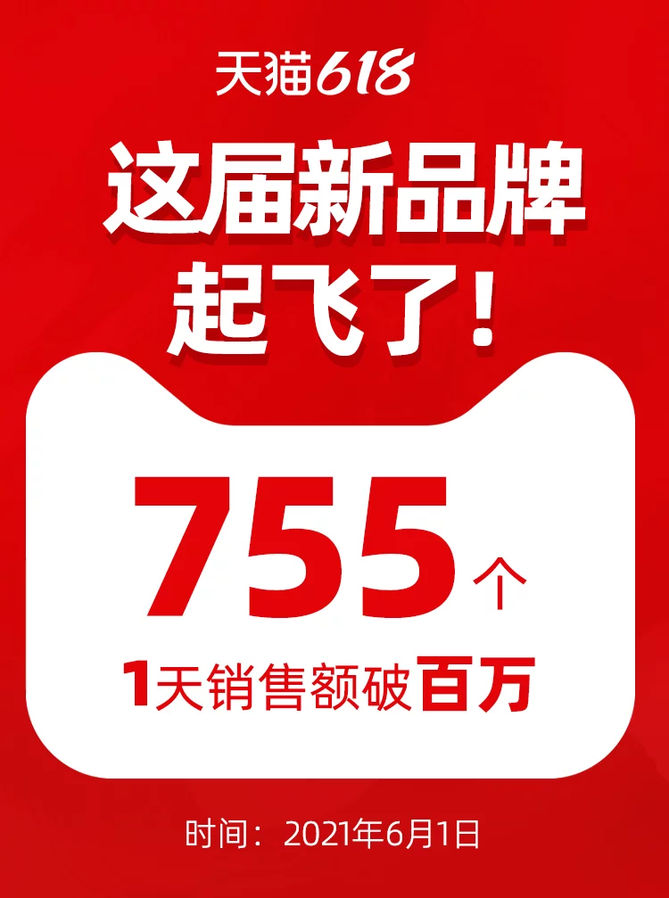 On 1 June, the first day of the 618 shopping festival, 755 ‘new brands’ (those that are participating in Tmall’s 618 promotions for the first time) reached a turnover of more than 1 million RMB ($157,000) on Tmall.
