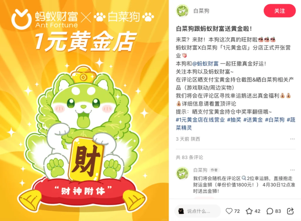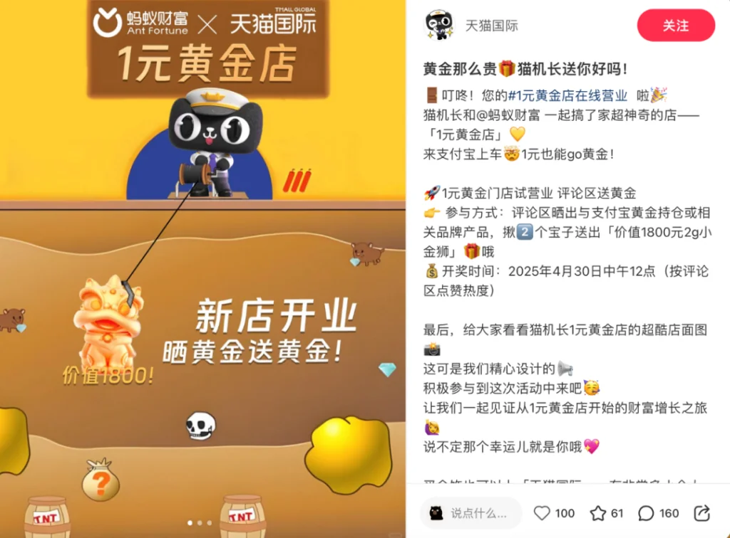 To celebrate the launch, Ant Fortune partnered with brands like Alipay, Alibaba, Xtep, Taobao, and Tmall Global to create custom ads reflecting each brand’s unique style. On social media, Ant Fortune also ran a giveaway, offering users a chance to win a 2g gold lion by posting screenshots of their gold holdings. The campaign resonated with young investors—fueling enthusiasm while making gold investing feel more accessible and secure.