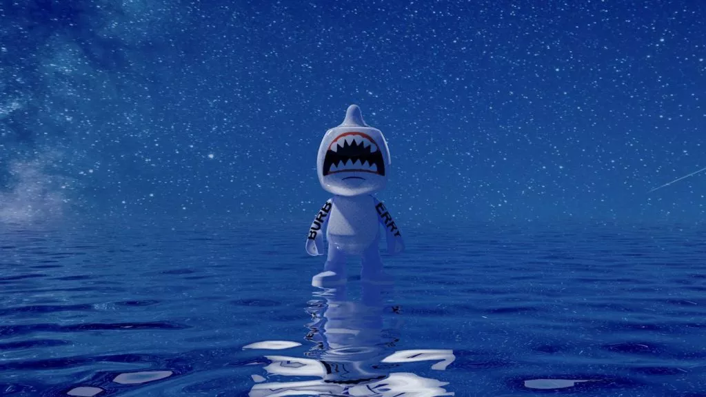Burberry’s Blanko character is a shark named Sharky B. This avatar’s outfit is based on a new Thomas Burberry monogram (‘TB’) summer exclusive logo, which was inspired by the design of the Animal Kingdom TV series.