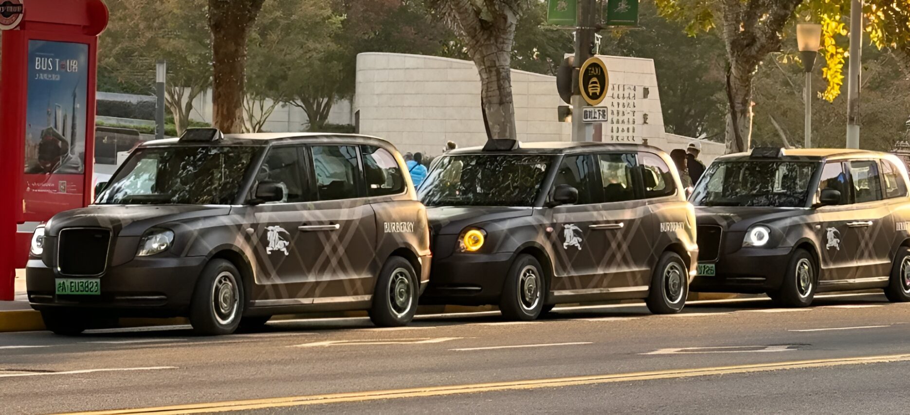 Burberry (博柏利) has taken its branding into some of Shanghai’s most expensive postcodes, this time on four wheels. Over the past week, a small fleet of Qiangsheng taxis wrapped in Burberry’s signature check pattern has been spotted moving through high-traffic commercial areas including the Bund, Plaza 66 and Fumin Road. If you see a Burberry taxi, they appear in loose groups of fewer than five vehicles, blending into everyday city traffic while remaining unmistakably branded.