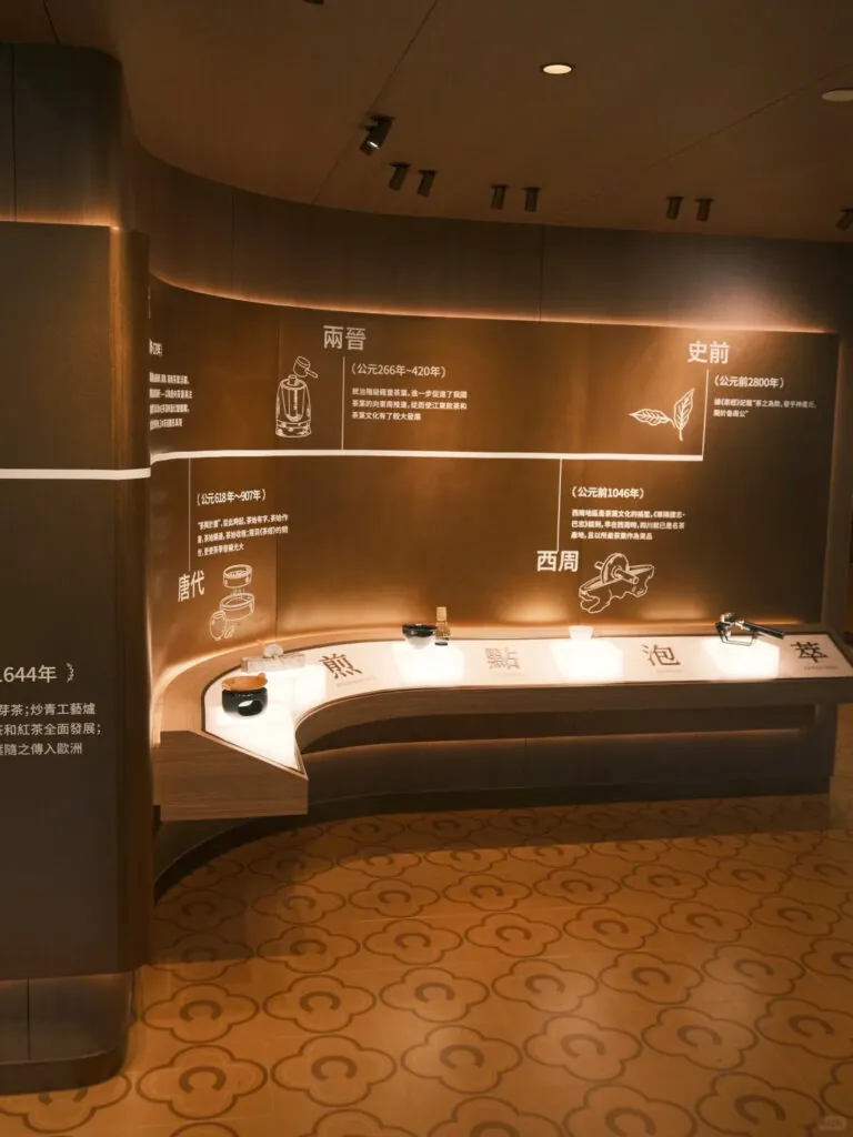 So, what’s in this warehouse of tea? Essentially exhibitions on the drink’s history. Visitors can learn about the five elements of tea making: boiling, frying, brewing, steeping, and extracting. This exhibition’s subject is another brand-aligned move by Chagee, who like to lean into their connection with heritage, Yunnanese tea making techniques.