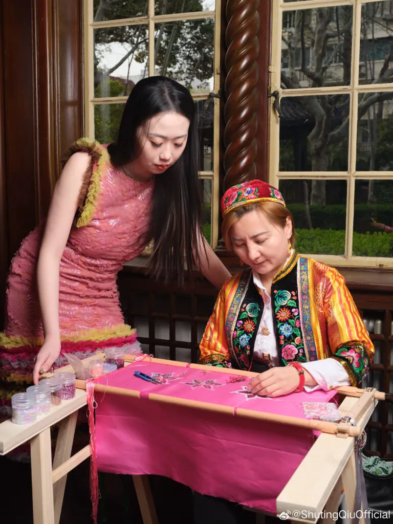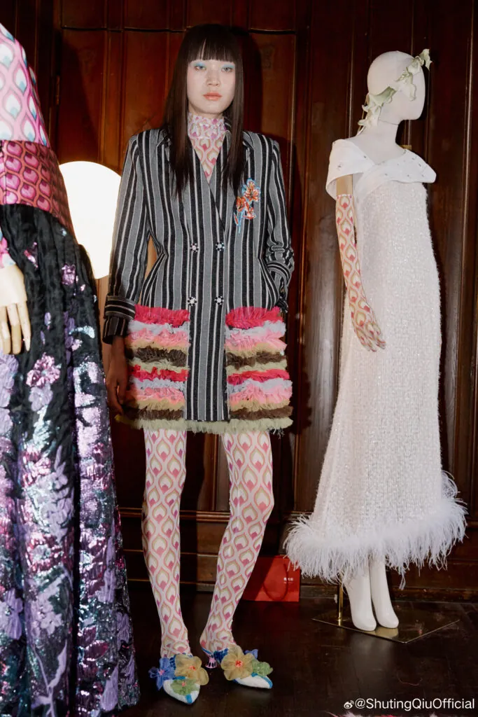 Firstly, traditional and ethnic elements from the Chinese culture are, of course, key features this year. “New Chinese Style” (新中式) has already evolved to include regional crafts and intangible cultural heritage. From Shuting Qiu’s use of embroidery from Hami (Kumul in Xinjiang) and silk from Hangzhou to Garçon by Garçon taking inspiration from the Mao suit and traditional robes, inspiration has come a long way from the traditional fashion of China.