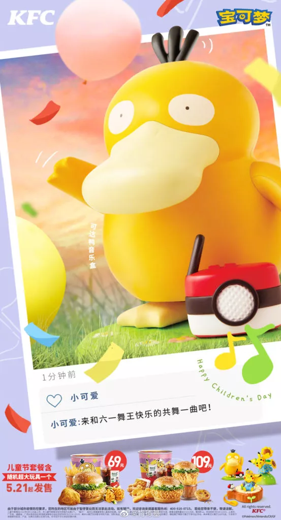 China’s Gen Z has once again shown that they are reliving their childhoods, as the latest collaboration between the American fast-food chain KFC and the viral video game Pokémon, dedicated to the upcoming Children’s Day (1 June) in China excites not only little ones but also sees a lot of buzz in young adults, with the dancing yellow Psyduck becoming a national sensation.