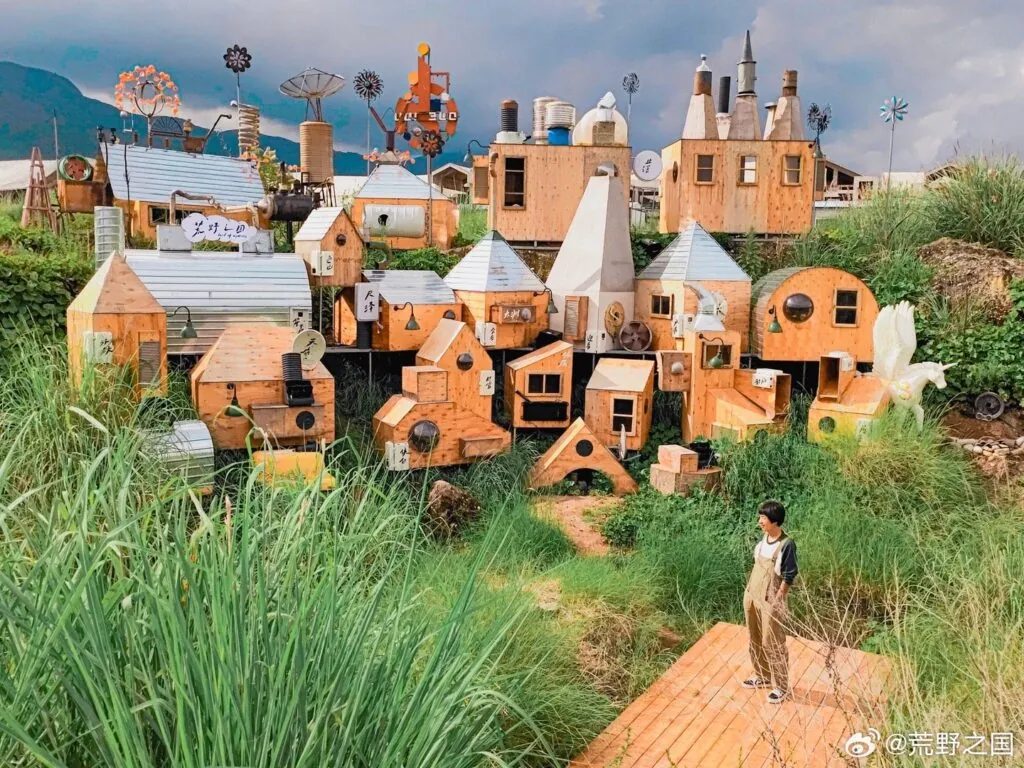 Land of Wilderness (荒野之国), sometimes translated as the Wilder Kingdom, is an artistic community built and run by poet and musician Qiao Xiaodao. A cross between a theme park and a hippie commune, Qiao built the houses and installations to be a “secret hideout” for himself and it quickly became a tourist attraction with many going to the middle of nowhere to “check in” (打卡) with the buildings.