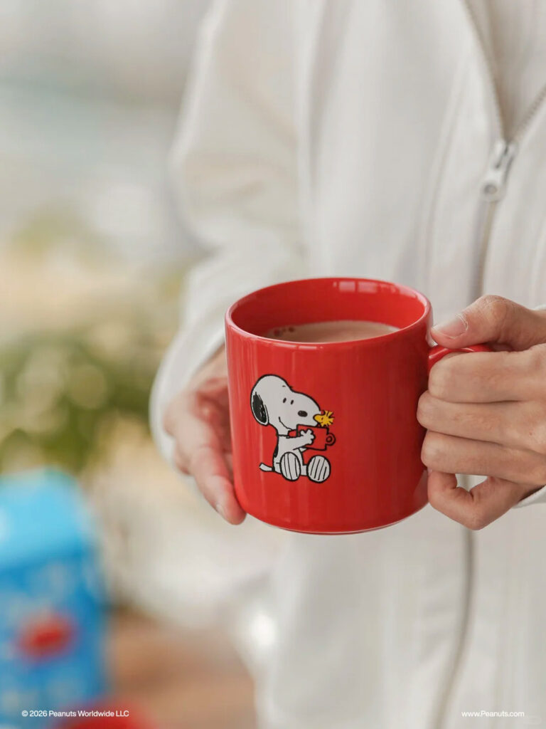The core product is a boxed set containing nine capsules of Saturnbird’s signature specialty instant coffee. Each mini canister features a different Snoopy ‘highlight moment,’ translating the character’s shifting identities into visual packaging cues. Alongside the coffee, the set includes a mug, magnetic fridge accessory and themed cards, extending the experience beyond consumption into collectible territory.