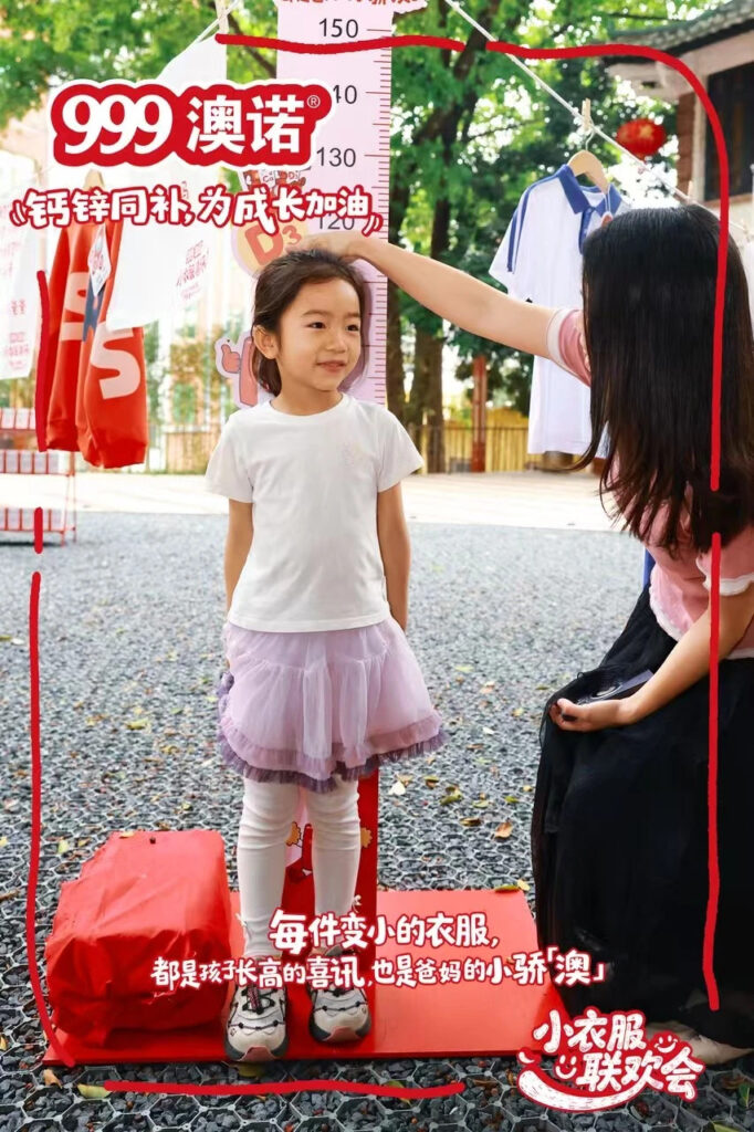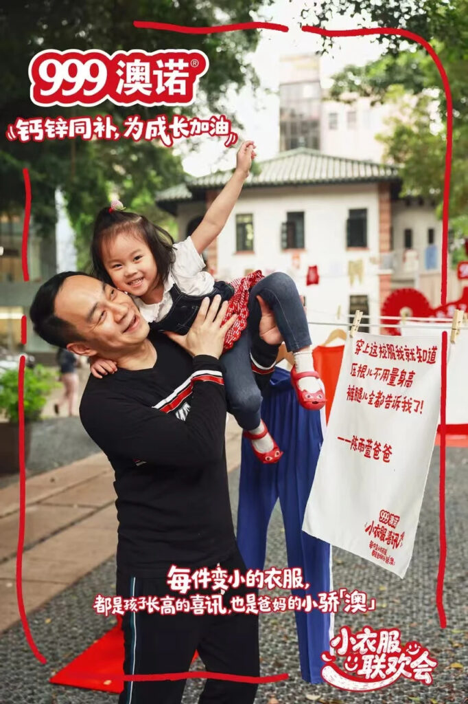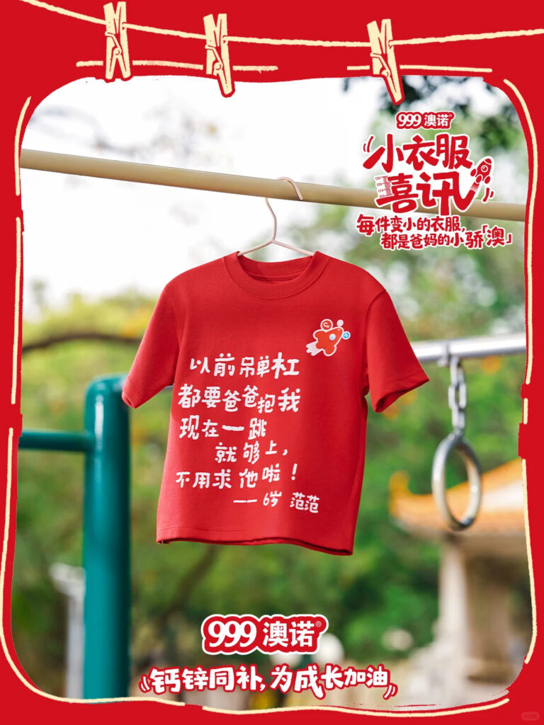 What’s really smart about this campaign is that the element of outgrown clothes ties into the very problem that 999 Ausnutria are trying to overcome: visibility. A child’s growth is visible but often goes unrecognised. Just as 999 Ausnutria products list supplement specifics, parents track height, nutrition, and development through charts and metrics. But the most immediate proof of growth tends to be clothes that no longer fit.