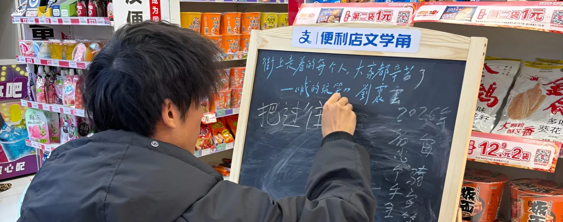 You walk into a convenience store in China to buy a bottle of water. At the back of the store there’s a black board where people have been writing messages to each other. Some are funny. Some are tired. Some are quietly moving. That’s the idea behind China’s latest viral micro-trend: convenience store literature (便利店文学), and Alipay (支付宝) is behind it.