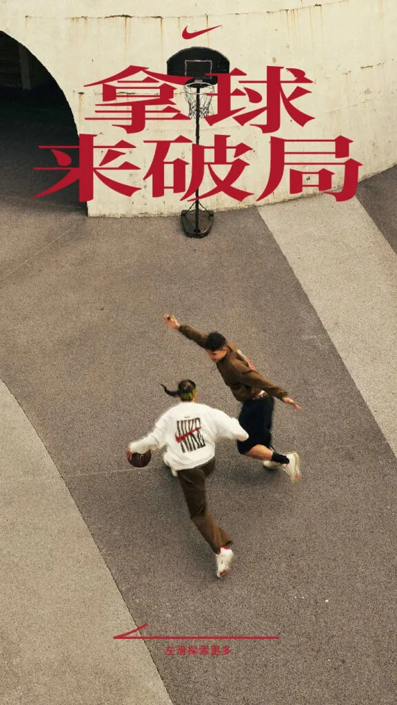 Nike has long anchored its message in the struggles and breakthroughs of athlete stories, and here it does the same. The idea being to drive home a motivational message with a CNY look.